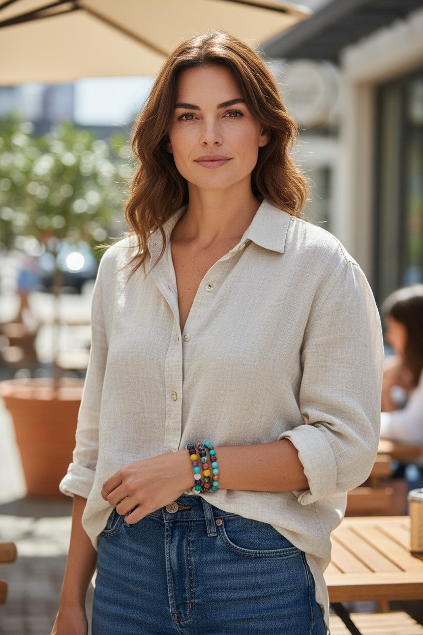 Mixed semi-precious stone stretch bracelet